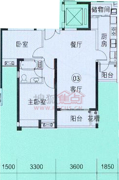 2室2厅1卫-高层洋房9号03两房两厅一卫户型