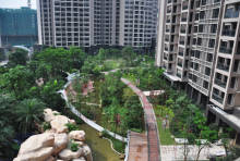 诺德名都位于华南板块核心,占地约为6.2万平方米,总建筑面积约为21万平方米,项目定位为华南城央公园生活主场,建筑密度为18.8%,容积率为2.71,绿地率达36.6%,公共绿地面积10325平方米。小区内拥有社区公园式园林,阳光草坪、无边际泳池、亲水木平台、网球场篮球场、儿童活动场地等设施齐全,更拥有150m超宽楼距。