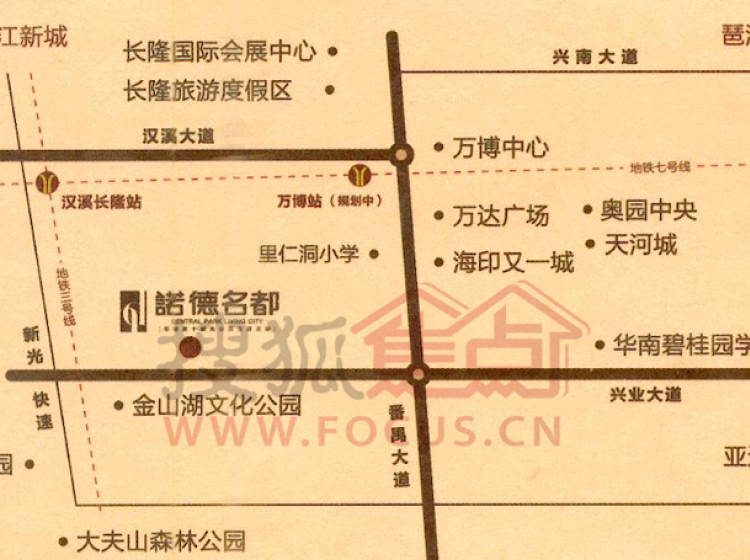 地铁:3号线汉溪长隆站、未来7号线万博站。