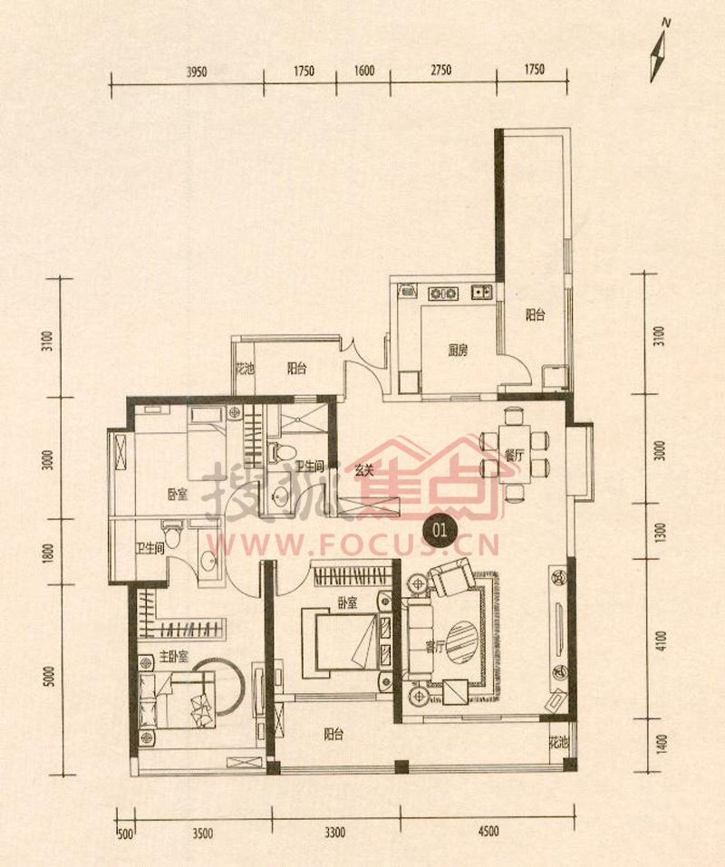 3室2厅2卫-4座2梯01/04单元