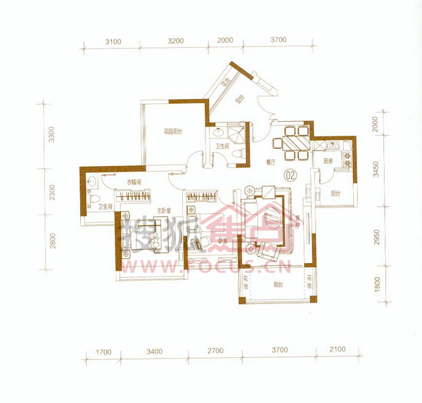2室2厅2卫-金山湖1号2座2梯02单位