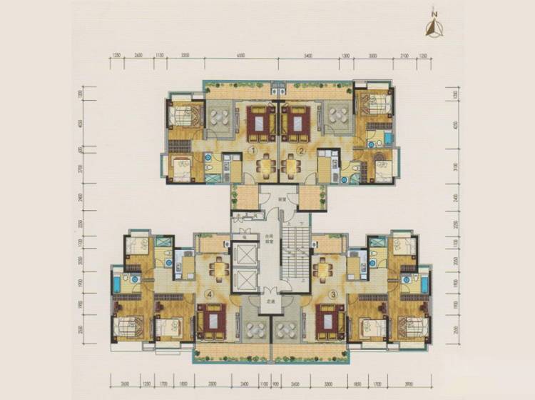 2室2厅2卫-24栋建面104平04户型
