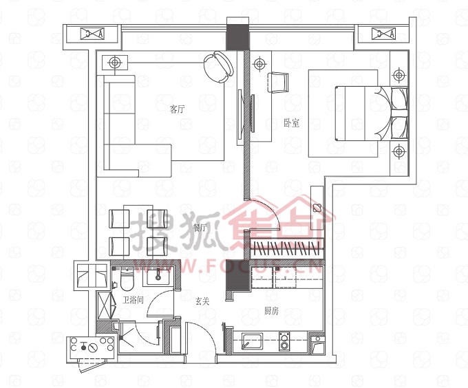 1室1厅1卫-45-50平公寓