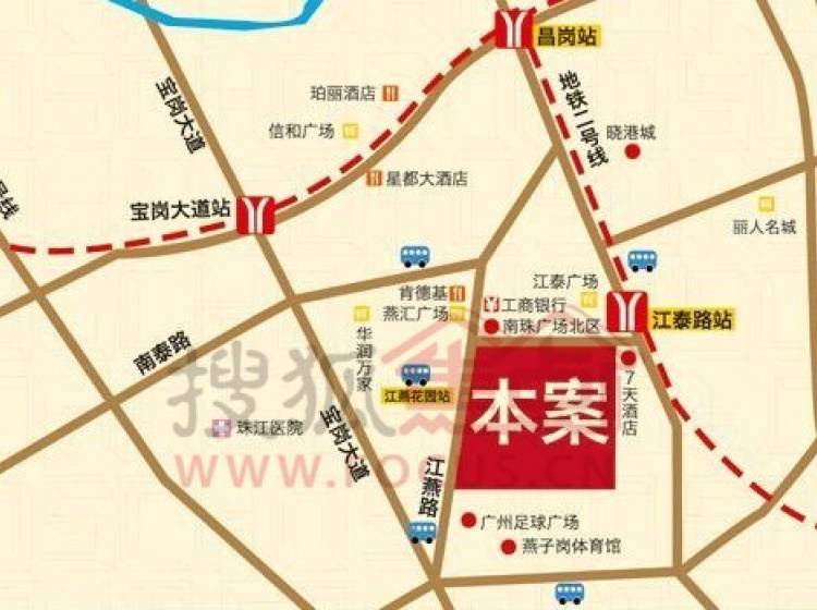 位于广州市海珠区南珠广场南珠南街1号(燕子岗体育场旁,地铁江泰路站D出口向右走200米)