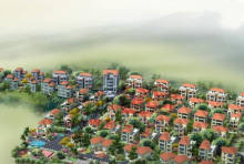 印月•翠谷位于广州南沙旅游风景区。背靠果树青葱的鹿颈山,面向碧波浩瀚的伶仃洋。小区依坡地而建,三面环山,西南见水,整个社区形态彷如北斗七星自然生长于半山之中。