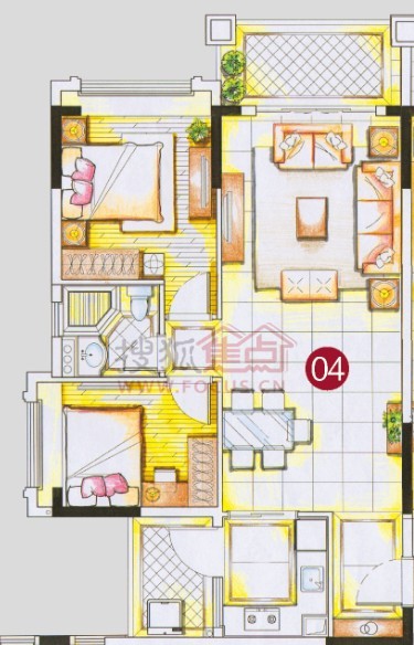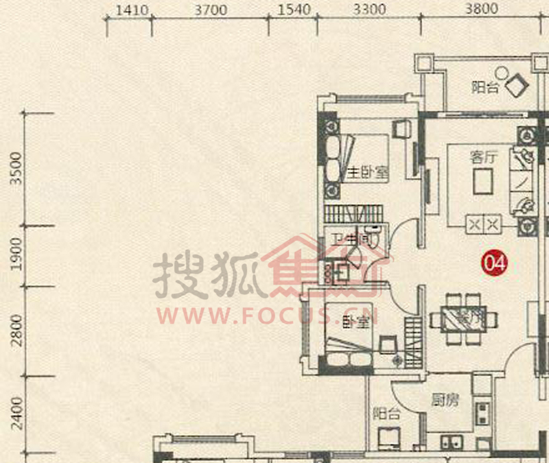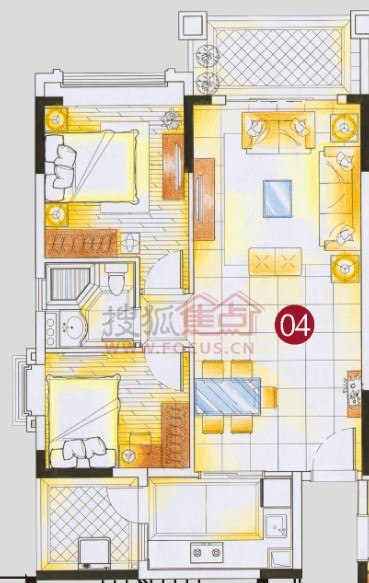 2室2厅1卫-4栋标准层04单位