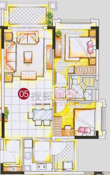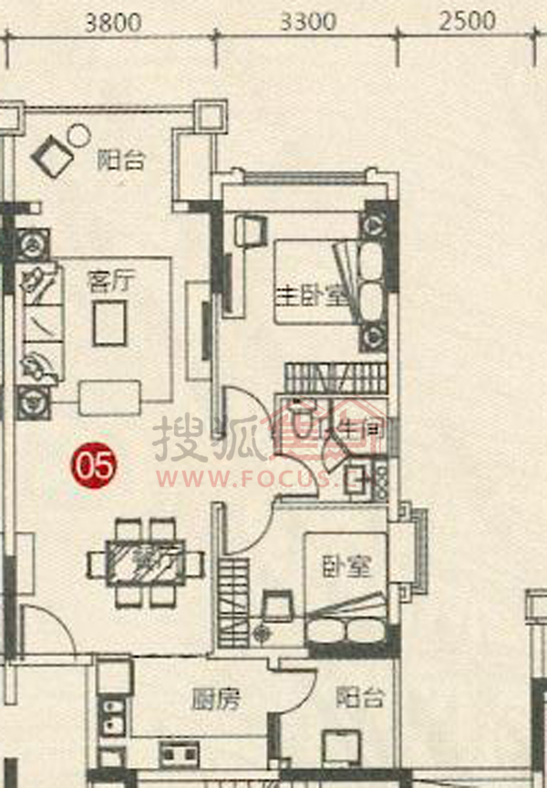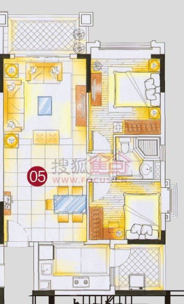 2室2厅1卫-4栋标准层05单位