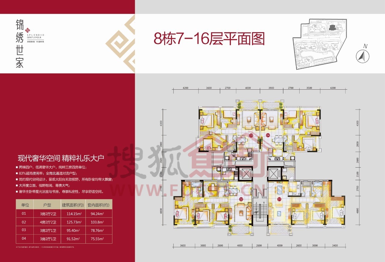 锦绣世家户型方正实用,全南北朝向设计,且户户带飘窗,其中部分单位还带入户花园,极大程度上保证了居家舒适性要求。