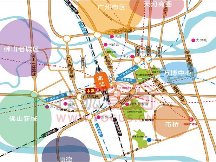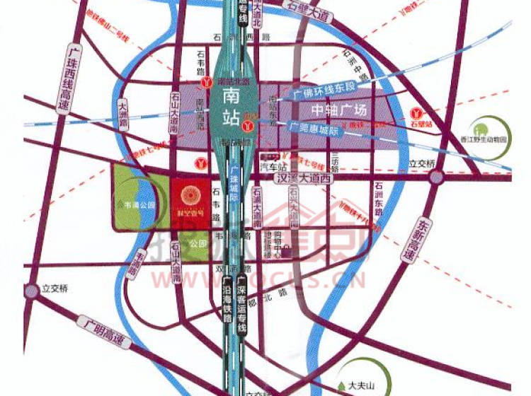 番禺 南站核心区汉溪大道与石山大道交汇处(西出发平台以南800米)
