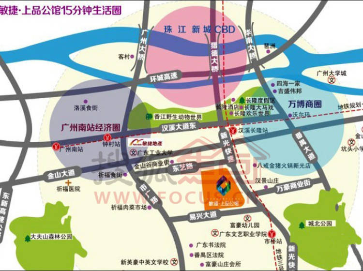 敏捷·上品公馆——华南板块核心商住综合旗舰,项目扼守广州交通主脉新光快速路,驾车5分钟即可直达广州南站商圈、万博-长隆CBD商圈,15分钟到达珠江新城CBD,纵揽广州核心万千繁华。