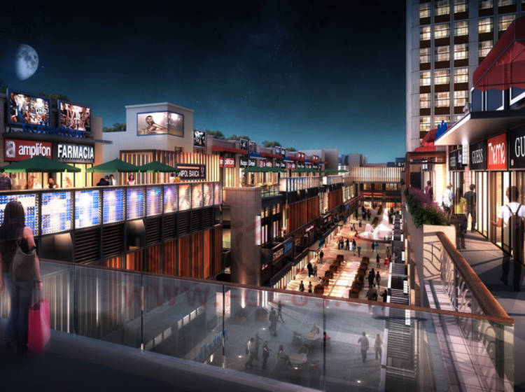 项目占地面积约12万平方米,总建筑面积约为50万平方米。项目规划特色商业街区、集中商业、剧场、主题精品酒店、LOFT公寓、甲级写字楼等物业构成。涵盖三大主题天地----时尚天地、儿童天地、休闲娱乐天地;一大超级引擎,全球首创穿透式全息影像,多维空间无边绝美舞台,欧美视觉重塑,以及中国实景演出高级团队,精心炮制文化特酿,带来殿堂级音乐视听盛宴,成为广州城市文化名片。除此之外,还将引入主题酒店、真冰溜冰场、儿童欢乐体验城、大型超市、新潮RTV、城市会所、大型餐饮等八大主力商家,打造超级商业引擎,致力于成为华南首席都市娱乐旗舰。