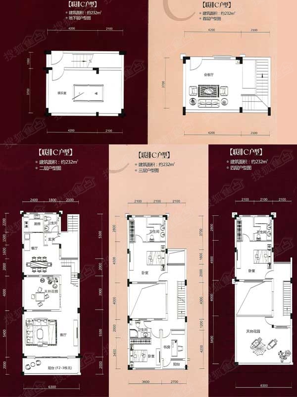 3室3厅3卫-联排C户型图