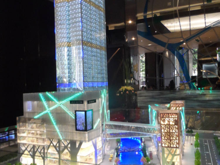 富力天域中心被马涌分隔成两块,呈三角形,规划建设A、B两栋楼。A栋为纯商业,B栋为办公性质,裙楼为商业,有天桥与A区连通,总建筑面积135928平方米。