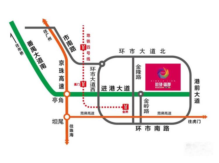 地铁:地铁4号线蕉门地铁站、金州地铁站,地铁15号线蝴蝶洲站、东瓜宇站(规划中, 规划来源:《南沙新区轨道线网优化及近期轨道控制性规划》, 具体开通时间以政府正式文件公布为准)