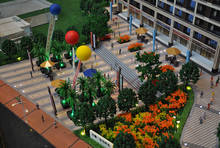 方圆•白云时光用简洁的线条铺装衬出广场的大气,突出浓厚的设计感,结合建筑风格、色彩,提炼建筑元素,在园林设计中融入体现。开阔的步行广场,休息平台及坐凳,为商业街提供充足的活动与休息空间。以枝条开阔的乔木为主,营造出浓厚林荫大道的感觉。既充满了商业的气氛,又是一个大气的城市化空间,营造不一样的都市感。商业街布局,线条简约,休闲的景观为商业街提供充足的活动空间。