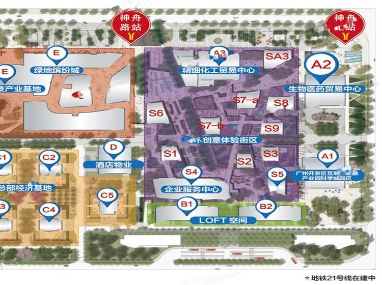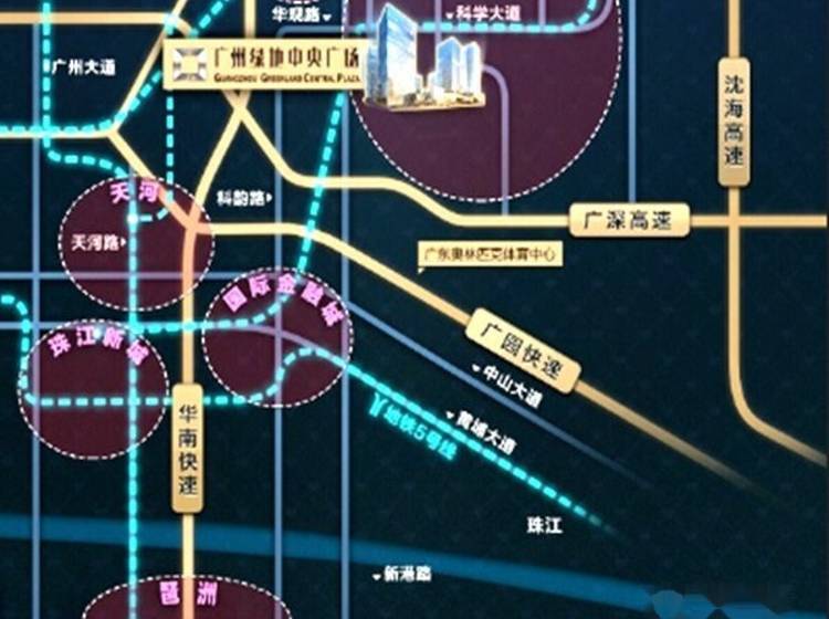 广州绿地 广场为绿地控股集团在广州开发的大型城市门户商办综合体项目,也是开发区商办项目范本,连续3年成为黄埔区商办销售鳌头。 该项目位于科学城核芯区科学大道,占据科学城桥头堡的 位置,与天河CBD紧密相连,从项目仅需5站瞬达珠江新城CBD。项目周边交通条件已比较成熟,目前已有多路公交通达广州各区。 21号线神舟路站与项目直接相连,是科学大道的 上盖物业。另外项目周边“三横三纵”立体高速交通网络,出行便利。 该项目占地10.1万平方米,总建筑面积约54.1万平方米,产品类型涵盖两栋150米门户超甲写、甲级办公楼、花园生态企业独栋总部办写字楼、酒店式公寓、loft公寓等 物业。更有近8万方的商业配套,将艺术、休闲融入商务,为整个项目的运营提供了配套支持。 项目的周边配套也日趋完善,拥享高德汇、万达、玉树公园、国际演艺 、五星级翡翠皇冠假日酒店等科学城成熟商务生活配套。 项目具备较良好产业运营基础,已打造成开发区综合产业基地,其中互联网金融产业园区已取得开发区 正式授牌,园区涵盖“电子科技、精细化工、生物医药、互联网金融、总部经济”五大产业主题,同时配置了集成办公 、企业服务平台、 服务 等企业服务配套。 项目目前已经建成近三分之二,在建的两栋超高层预计将于2019年建成并投入使用。