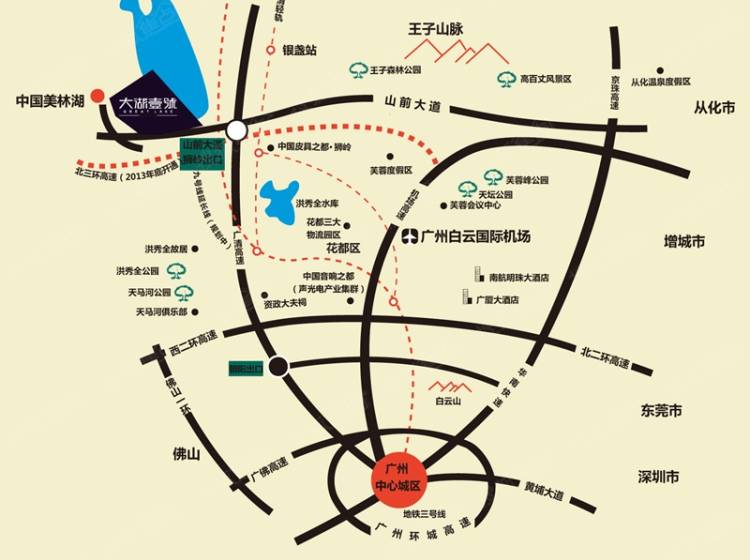 交通:广清轻轨、广清高速、北三环高速、武广高铁、北二环高速等