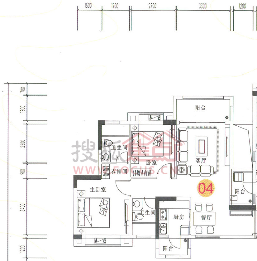 2室2厅2卫-2栋2-8层标准层04单元户型图