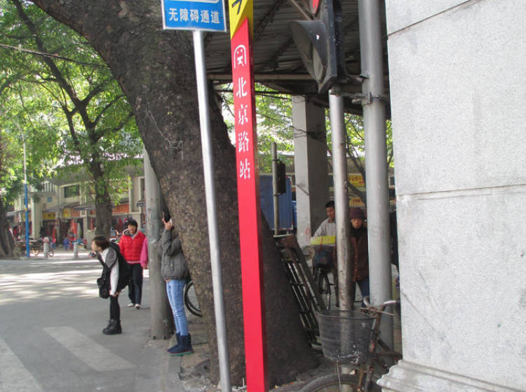 1号线农讲所站;2号线海珠广场站;6号线海珠广场站,北京路站,团一大广场站
