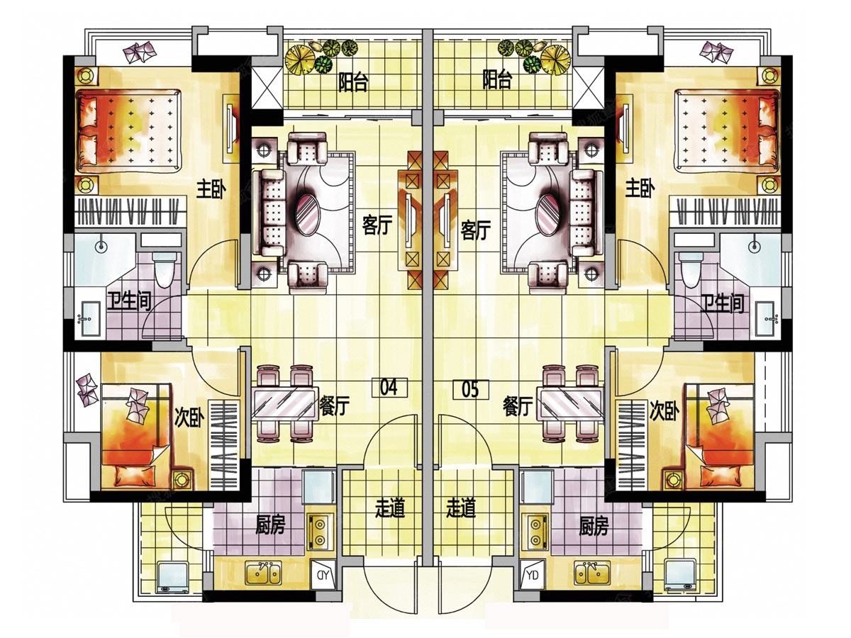 在售 户型方正 全明格局 客厅朝南 主卧朝南 餐客分离 双阳台
