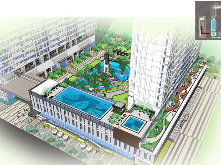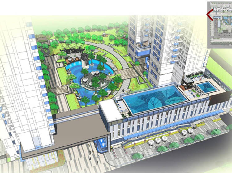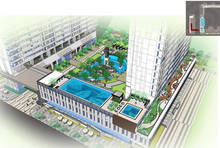 休闲场所:五星级酒店园林、多功能星级会所、无边界露天泳池