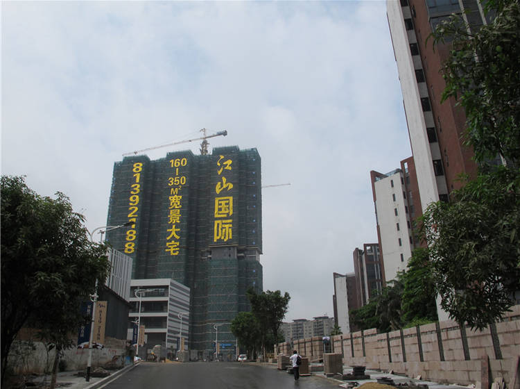 江山国际占地35899.8平方米,绿地总面积11025.8平方米,总建筑面积75965平方米,由T1-T5共5栋塔楼组成,楼层为地下2层,地上29层,1-3层为公建配套,4-29层为住宅,总户数250户;1.7低密度容积率;两梯两户的设计,户户南北对流,居住舒适度在广州中心区实属稀缺;北望珠江,南望黄埔涌及万亩果园;