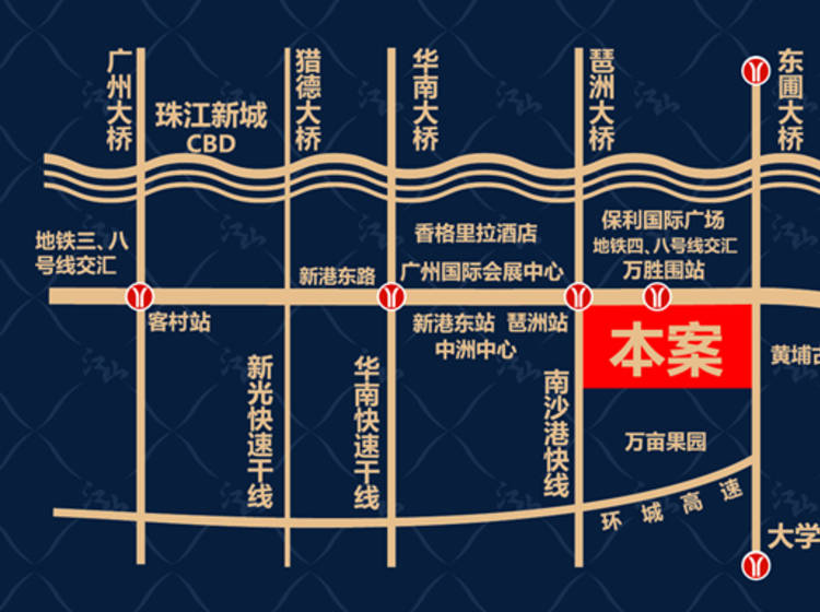 江山国际是由南驰集团推出的江景盘,坐落于海珠区琶洲新港东路。根据政府规划,琶洲将与珠江新城、员村共建,成为广州城市核心CBD。目前,琶洲已有多家500强总部进驻,香格里拉、威斯丁、朗豪、洲际等酒店也先后落成。在珠江新城开发建设已近尾声之际,琶洲将作为国际会展中心和世界500强总部基地,成为广州市政建设的下一个发力点。