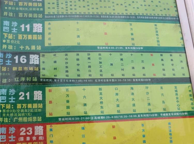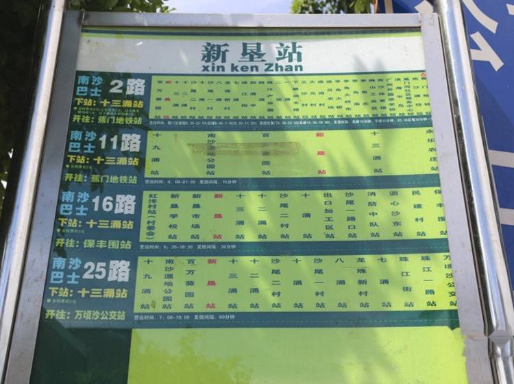 南16路:新垦站,新垦市场站,新垦学校站,红洋村站
