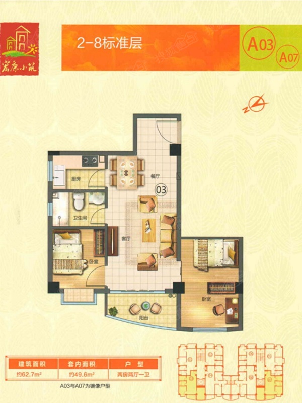 42万/套 建面62.7m²