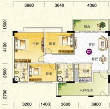 3室2厅2卫-嘉华世家2幢10层02单位户型图