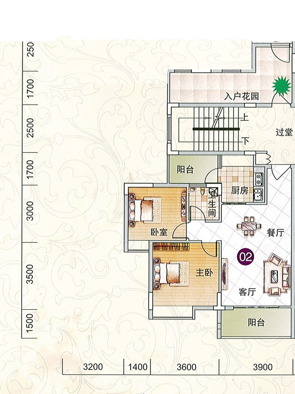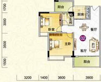2室2厅1卫-嘉华世家2幢3-6层02单位户型图