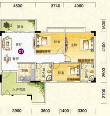 3室2厅2卫-嘉华世家2幢10层01单位户型图