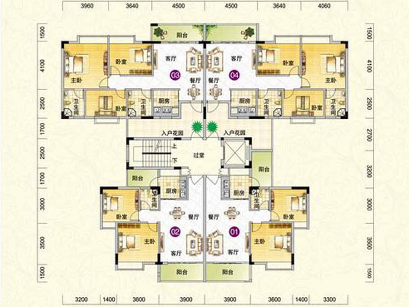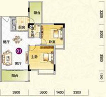 2室2厅1卫-嘉华世家2幢3-6层01单位户型图