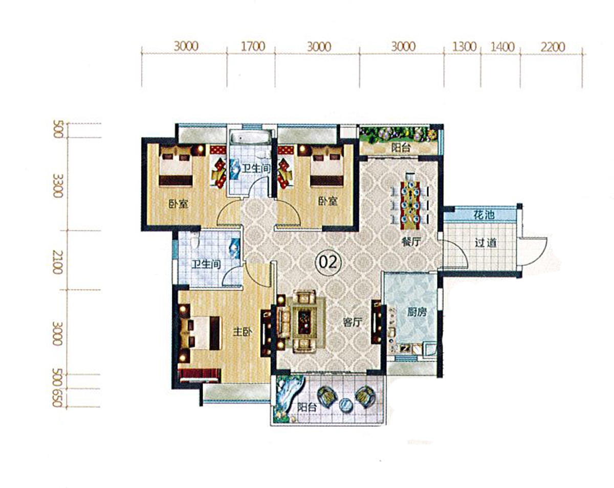 2室2厅1卫-1梯01,2梯02,3梯01,02
