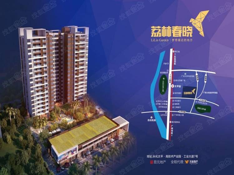 项目由两栋18层精品住宅、沿街特色商业及半围合时中心园林组成。坐拥太平镇核心商圈,百米生活圈内涵盖医院、学校、银行、商超等众多生活配套。更有14号地铁线近在咫尺,全方位满足新广州人的置业需求。