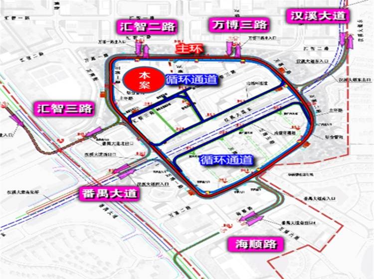 从珠江新城出发,在天河区城区道行驶1.7公里,左转进入猎德大道;沿猎德大道一直向前行驶9.5公里,从迎宾路/沙溪/洛溪出口离开,朝华南快速/迎宾路/沙溪方向,进入X270/迎宾路;沿迎宾路/X270一直向前行驶3.4公里,左转进入S296/兴南大道;沿S296/兴南大道行驶1.4公里,右转进入万博四路;沿万博四路一直向前行驶0.8公里,到达项目
