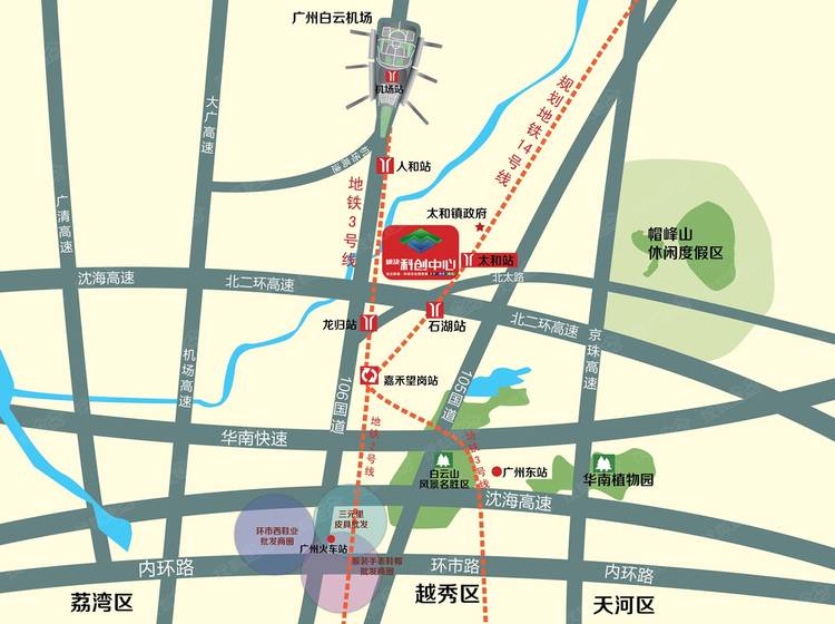 (6)交通:地铁龙归站、地铁太和站(预计2017年开通)、公交民营科技园门口站、太和总站(民营科技园)、北太路东站。