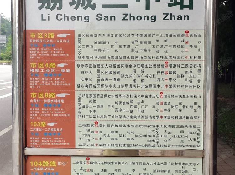 荔城三中: 增城103路、增城3路、增城104路、增城105路、增城8路、增城4路