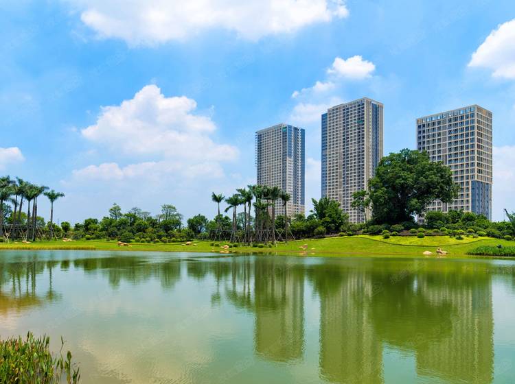 每一栋楼均采用蝶式排布,使得每栋楼都能南北对流,通风采光;而且楼栋视野也能互相错开,保证充足的楼间距和开阔的园景视野。整个组团构筑出“一轴一环一带六庭院”的园林景观,既满足现代人多元化的生活场景,也为世代之间创造更多的生活空间。规划有面积约 450 ㎡的中央成人泳池和面积约 88 ㎡的儿童泳池,让大人小孩都可以有各自的嬉水空间。全屋精装且配备中央空调,这在广州并不多见。