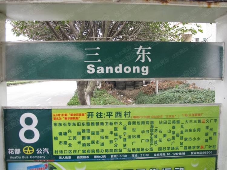 花8路、花8B路三东站下车。