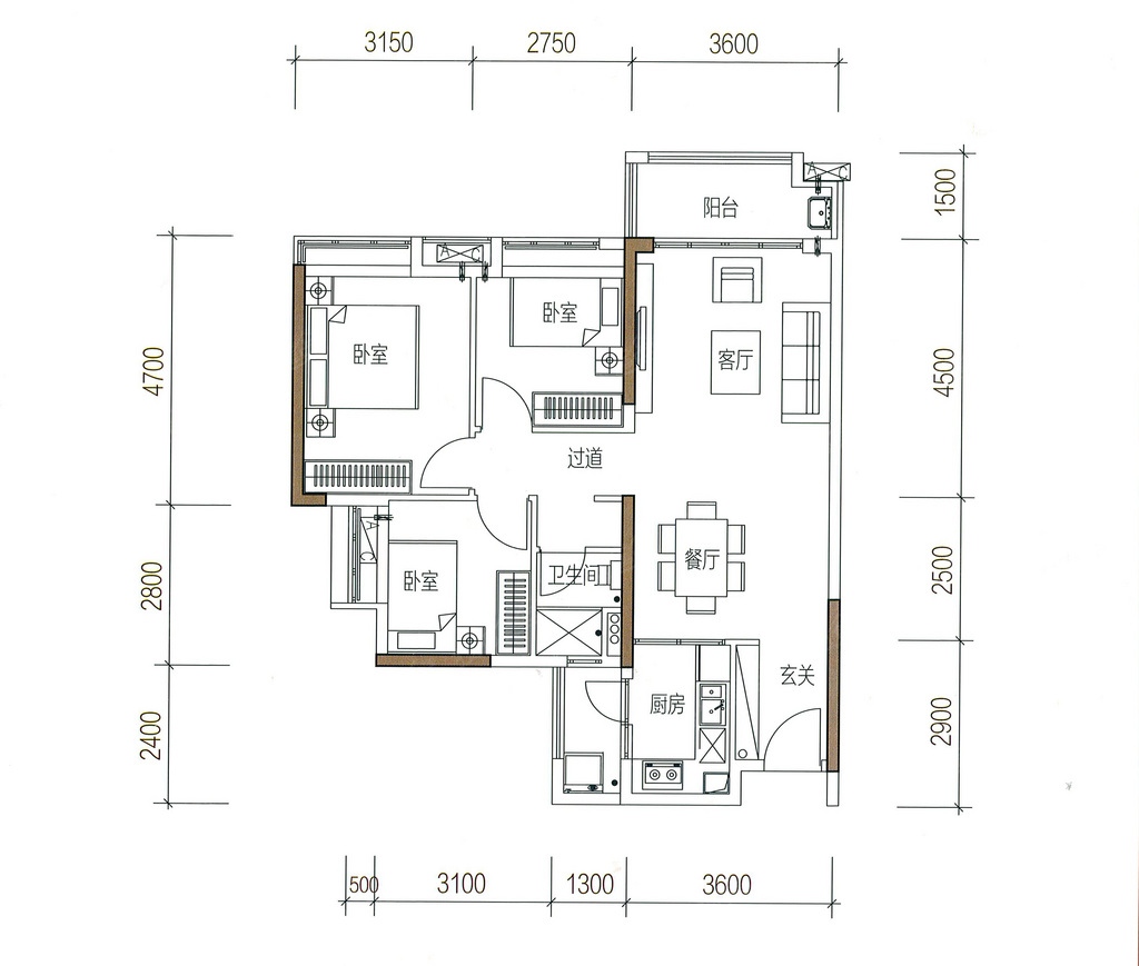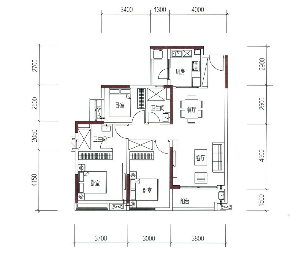 3室2厅2卫-2栋01、02、05/3栋01、02、04