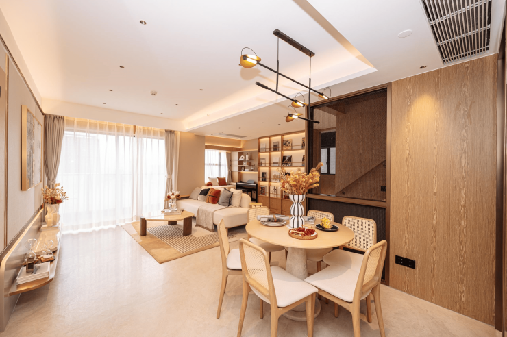 同时,首层空间宽敞,让亲友愉悦聚会从容自在。人站在阳台,便可将园林盛景尽收眼底。窗外约300米范围内,几乎没有20米以上建筑遮挡,这如将世界尽揽入怀的感觉,恰是生活格调与尊荣的注脚。