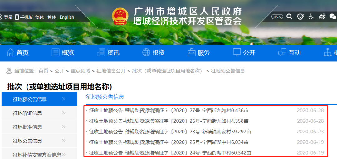就在最近,增城又有5宗土地准备征收,涉及新塘镇南安村和宁西街九如村、湖中村,共征收130.467亩!