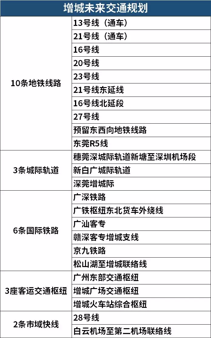集国家铁路、城际轨道、城市铁路、一般城市公交服务为一体,穗莞深城际铁路、地铁13号线、新塘经白云机场至广州北城际轨道、广汕铁路、地铁28号线、地铁16号线等都将在此交汇。