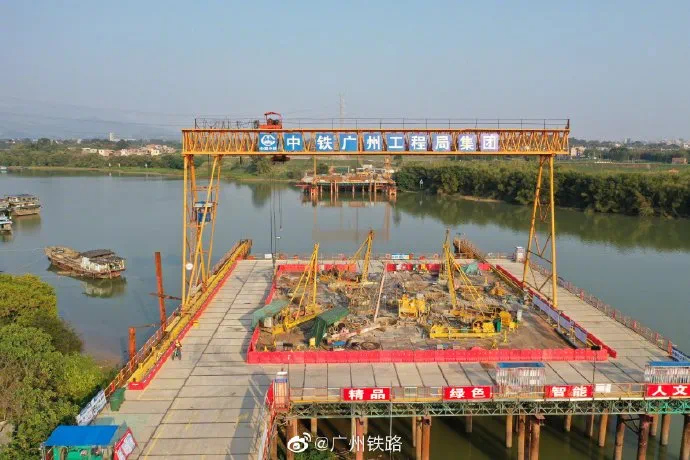 塘口村对岸,广汕铁路正式施工