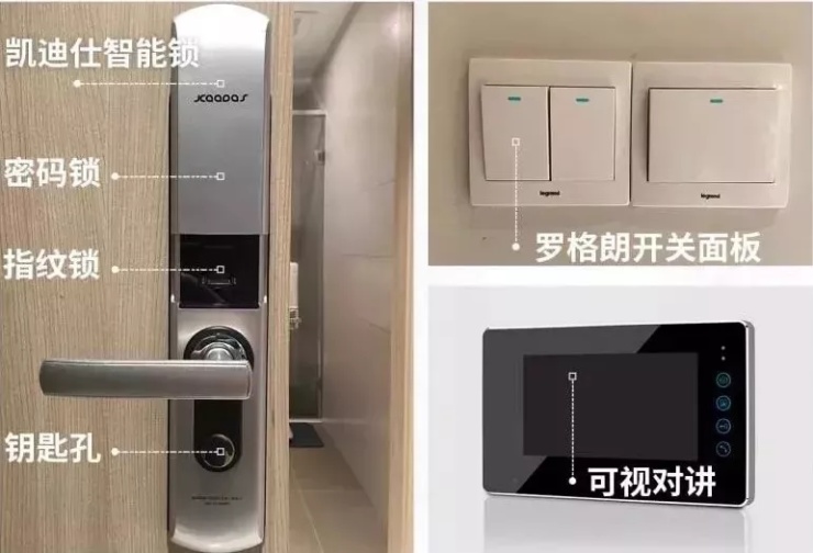 室内还配备腾龙户内门,顶固户内门锁,守护独立家庭生活。