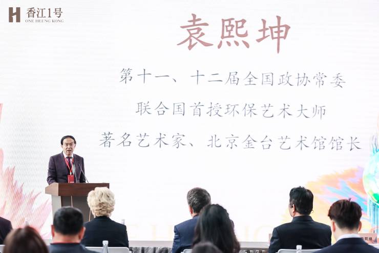 袁熙坤,这位作品遍布世界、荣获多国“总统最高荣誉勋章”的艺术大师,是中国文化走向世界的代表性人物。他的创作始终根植东方美学,胸怀人类共同关切。在致辞中,他深情阐释:“‘未来之眼’是我对香江1号这一‘大地艺术品’的回应。它扎根中国文化,眺望人类共同未来。中央那只通透的圆环,是一只凝视寰宇、洞察万象的智慧之眼,邀请所有人在这里,看懂中国,看懂未来。”
