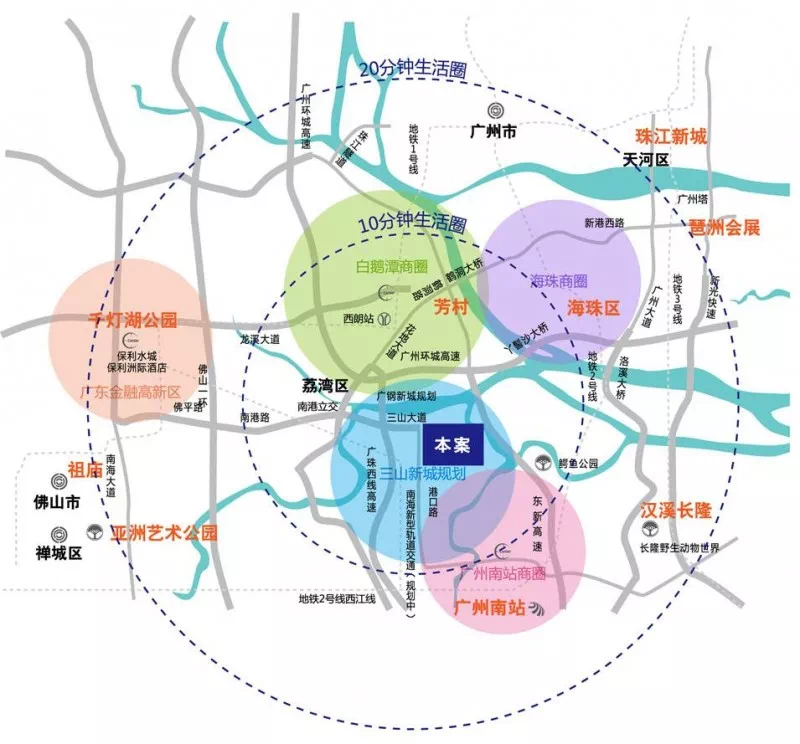 22号线白鹅潭站沿花地大道北铺设,紧挨高架,靠近一号线芳村站,呈南北走向。随着多项重大建设启动,白鹅潭区域被推到时代发展的正中心,未来区域所承载的居住功能将进一步得到释放,而枢纽综合体的建设,正好能满足未来居住配套上的需求。