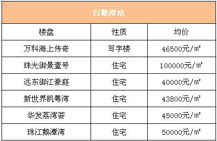 白鹅潭站靠近黄沙,市中心的区位,还临近珠江,加上黄沙那满是粤韵老广气息,周边一手楼盘的房价也是颇高的,销售均价区间范围在4-10万/平米,你说要是等综合体启用,这边的房价,还不得突破天际!