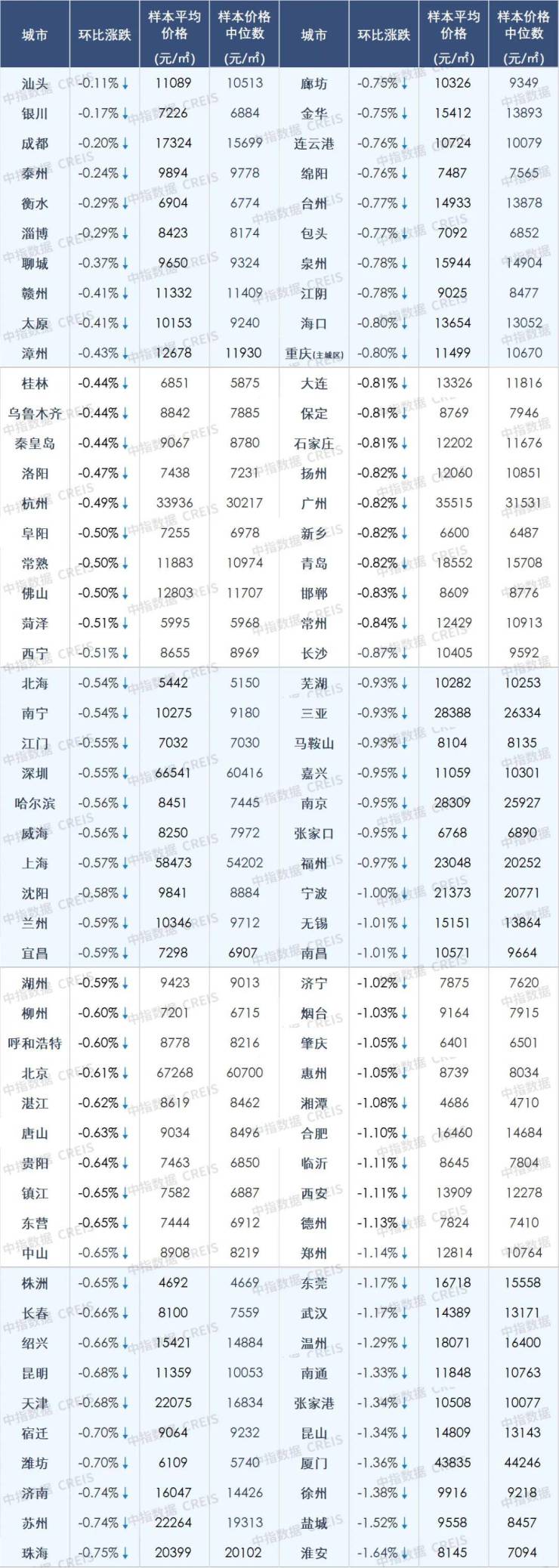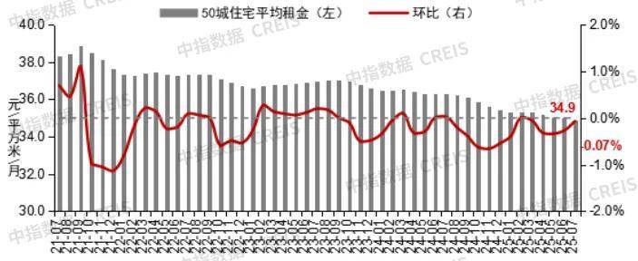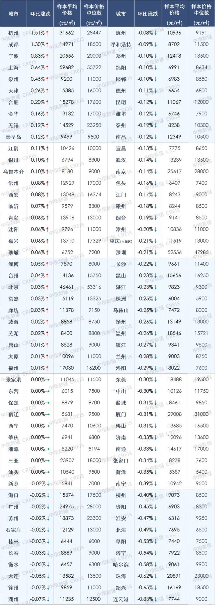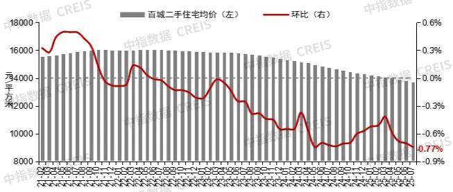 根据中国房地产指数系统百城价格指数对全国100个城市新建、二手住宅销售市场及50个城市租赁市场的调查数据:7月,百城新建住宅均价为16877元/平方米,在部分核心城市优质改善项目入市带动下,环比结构性上涨0.18%,同比上涨2.64%。二手房方面,挂牌量持续高位下,“以价换量”现象持续主导市场,7月百城二手住宅均价为13585元/平方米,环比下跌0.77%,同比下跌7.32%。租赁住宅方面,在毕业季租住需求支撑下,7月重点城市住宅平均租金环比跌幅有所收窄,7月50个城市住宅平均租金为34.93元/平方米/月,环比下跌0.07%,同比下跌3.81%。